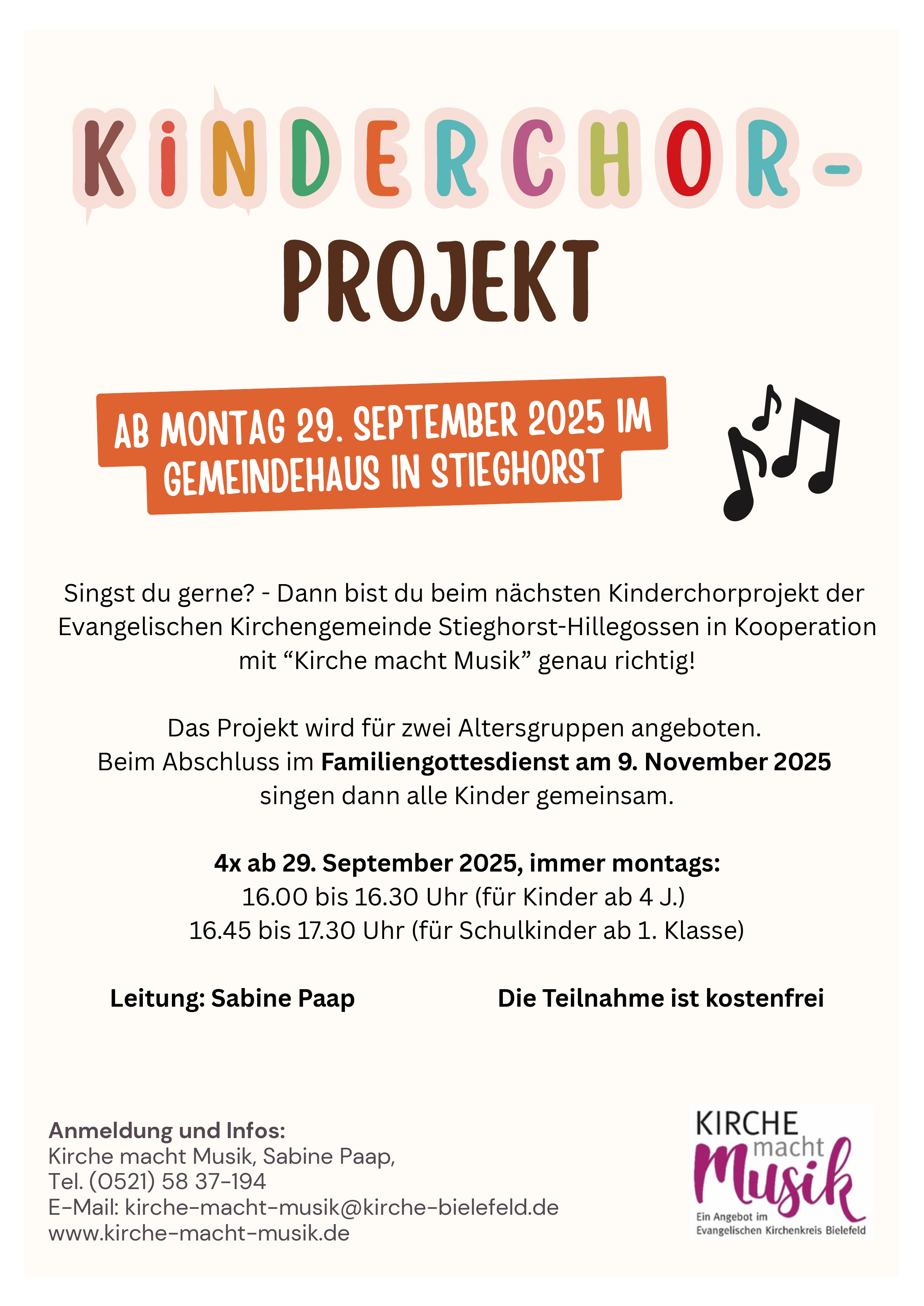 Die Chorprojekte sind möglich durch die Kooperation der Kirchengemeinde Stieghorst-Hillegossen und Kirche macht Musik.